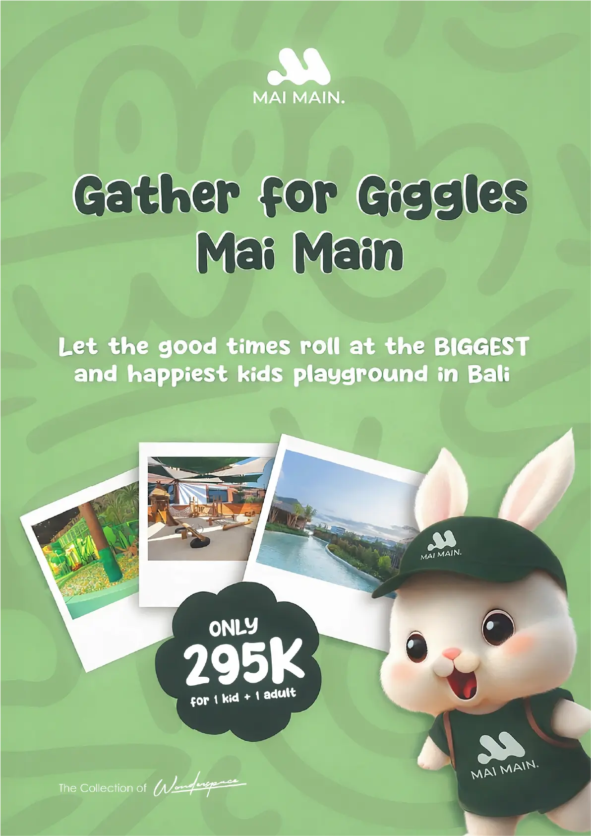(62) 812 3733-9353Come and play at Mai Main Playground Canggu, the biggest and most exciting playground in Bali! With a huge indoor play area, little adventurers can enjoy exciting activities like the flying fox, ball pool, and interactive games. Step outside for even more fun—splash in the lagoon-style pool, dig and play in the sand, feed friendly animals, or hop on the playful train ride that takes you around the park!