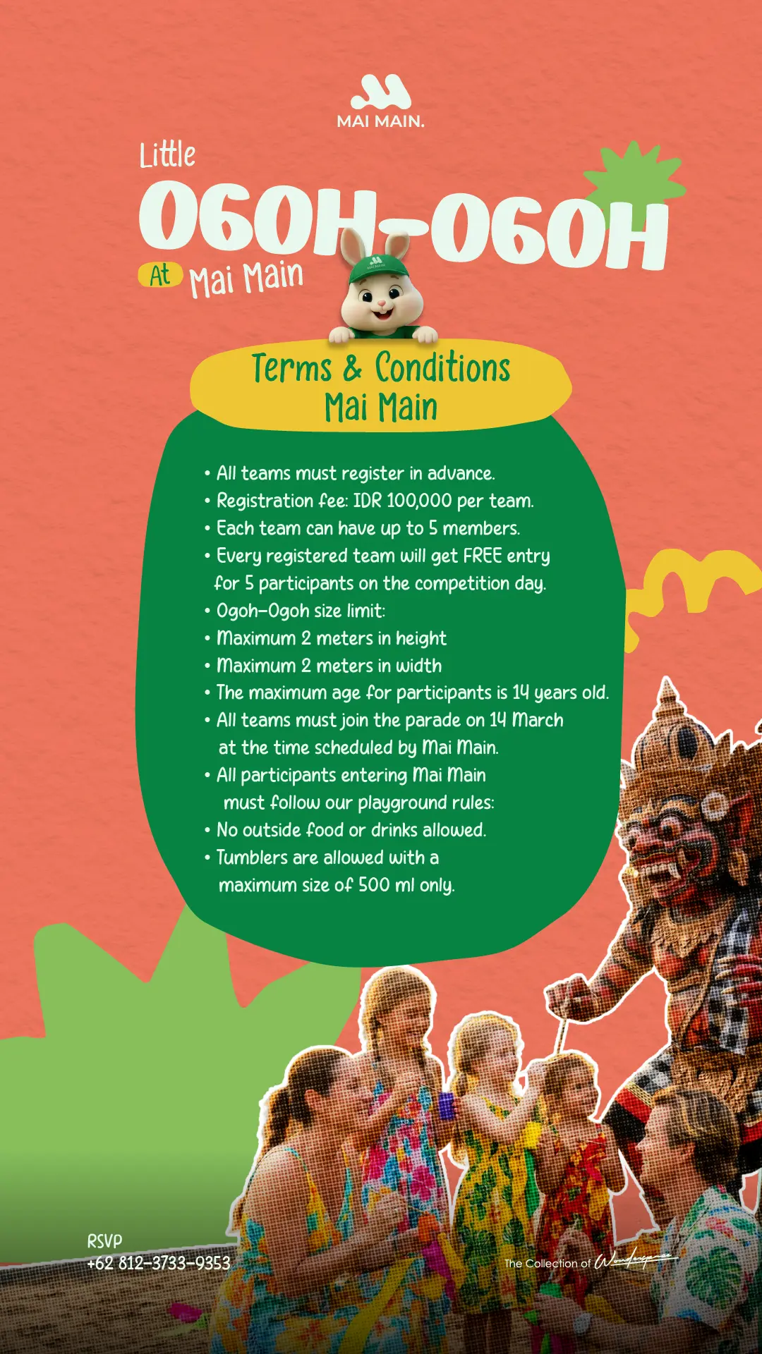 Interested in creating and decorating your own do-it-yourself Ogoh-Ogoh? Come to Mai Main Playground in Canggu by Wonderspace to craft a fantastic Ogoh-Ogoh in a team and parade it afterwards. Register your team immediately and win the grand prize!